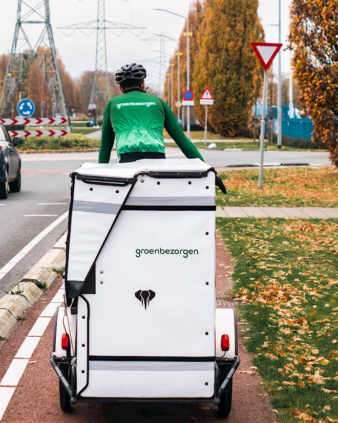 Groenbezorgen est une entreprise de coursiers à vélo des Pays-Bas qui se consacre entièrement à la logistique durable. Avec une vision claire : rendre les villes plus propres, plus silencieuses et plus efficaces.