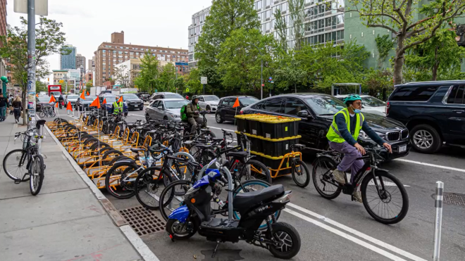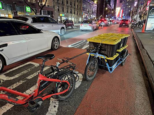 Le système est génial : jusqu'à 50 remorques CARLA CARGO sont disponibles dans de nombreuses stations de distribution à travers Manhattan. Aux heures de pointe, jusqu'à 300 remorques sont en circulation en même temps - une flotte verte en action ! Au total, la flotte CARLA d'Amazon compte plus de 500 remorques, entretenues par des professionnels et prêtes à fournir des performances maximales.