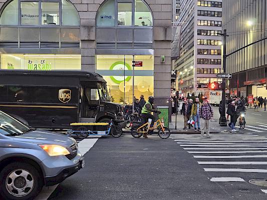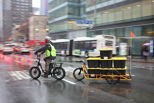 Depuis 2019, Amazon mise sur la puissance de CARLA CARGO à Manhattan, et ce avec une conviction totale ! Dans cette métropole très fréquentée, les remorques intelligentes livrent en un clin d'œil des produits alimentaires et des courses de Whole Foods directement à domicile, de manière écologique, efficace et absolument fiable.